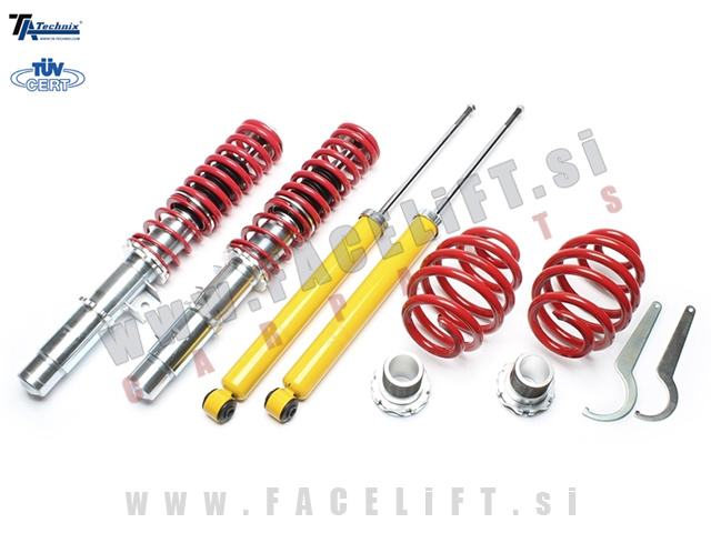 Nastavljivo vzmetenje (gewinde) TA Technix. Vzmetenje je novo, z garancijo. Komplet vsebuje štiri amortizerje, štiri vzmeti in ključ za nastavitev višine.