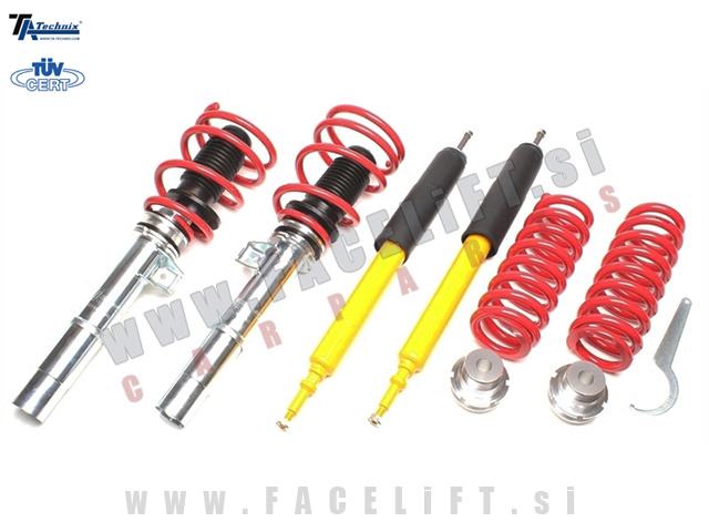 Nastavljivo vzmetenje (gewinde) TA Technix. Vzmetenje je novo, z garancijo. Komplet vsebuje štiri amortizerje, štiri vzmeti in ključ za nastavitev višine.