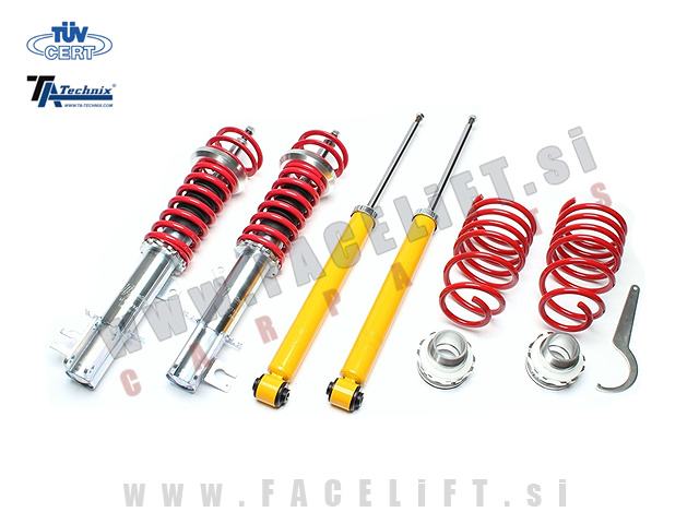 Nastavljivo vzmetenje (gewinde) TA Technix. Vzmetenje je novo, z garancijo. Komplet vsebuje štiri amortizerje, štiri vzmeti in ključ za nastavitev višine.