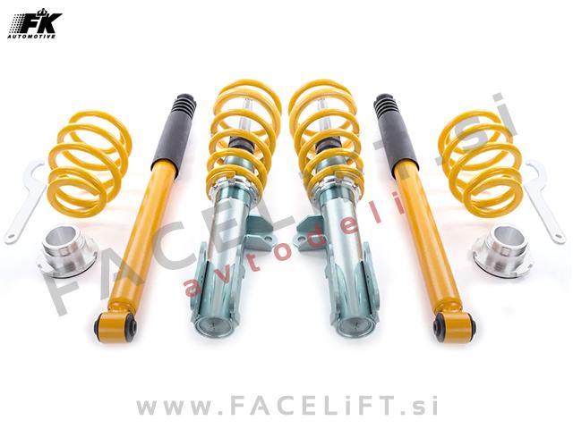 Nastavljivo vzmetenje (gewinde) FK. Vzmetenje je novo, z garancijo. Komplet vsebuje štiri amortizerje, štiri vzmeti in ključ za nastavitev višine.