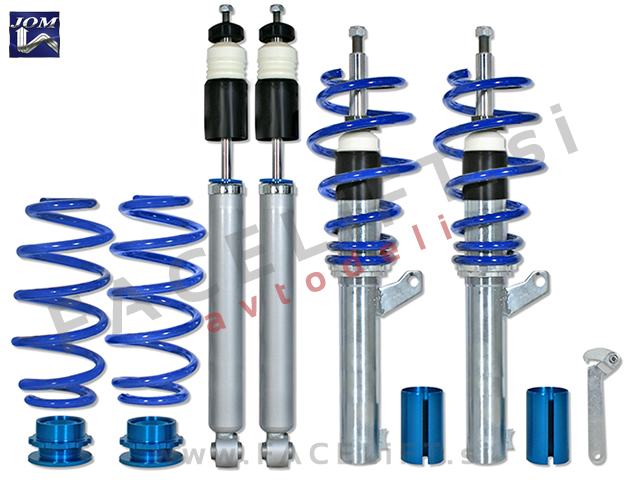 Nastavljivo vzmetenje (gewinde) JOM. Vzmetenje je novo, z garancijo. Komplet vsebuje štiri amortizerje, štiri vzmeti in ključ za nastavitev višine.