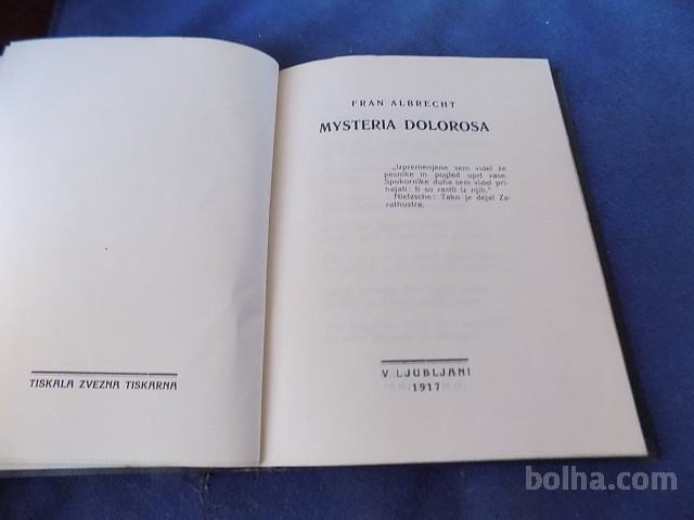 Mysteria dolorosa,avtor Fran Albrecht,V Ljubljani 1917,knjiga ima 78 strani,pošljem po pošti ali osebni prevzem.