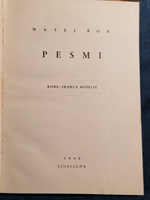 Pesmi Matej Bor, L 1946 letnik, risal risbe France Mihelič, knjiga ima 125 strani, pošljem po pošti ali osebni prevzem. Knjiga je v zaboju pod zaporedno številko 83 A .
