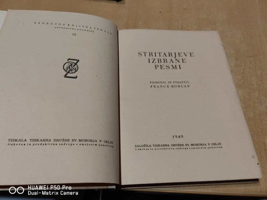 Stritarjeve izbrane pesmi / Stritar, Josip - prva izdaja 1949 *