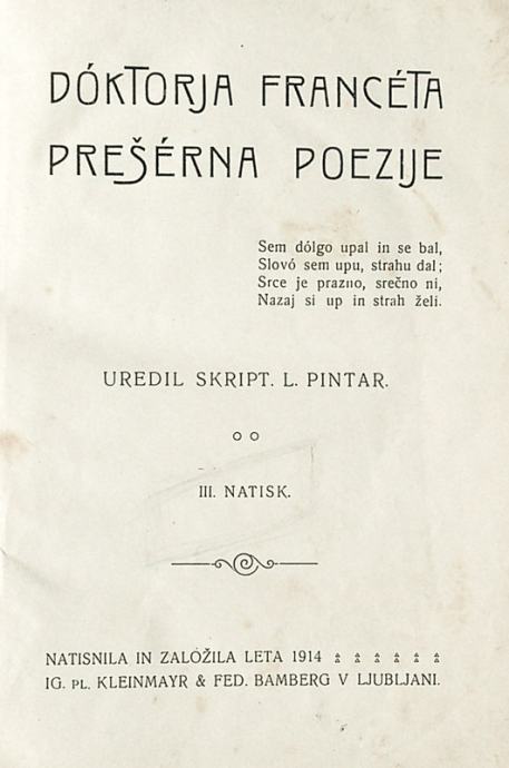 DOKTORJA FRANCETA PREŠERNA POEZIJE, uredil L. Pintar