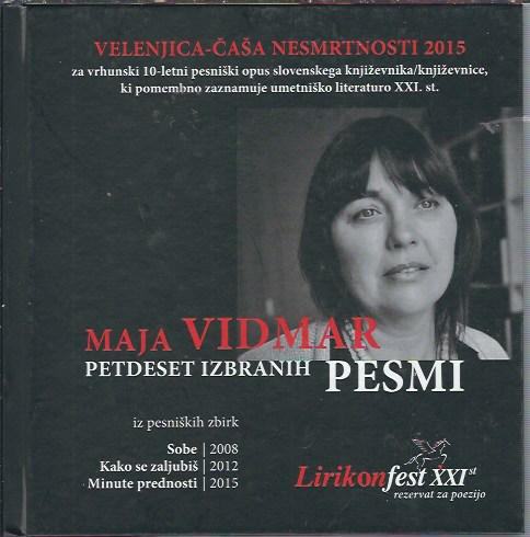 Naslov Petdeset izbranih pesmi : iz pesniških zbirk Sobe, 2008, Kako se zaljubiš, 2012, Minute prednosti, 2015 : [iz avtoričinega pesniškega opusa 2006-2015] / Maja Vidmar ; [fotografije avtorice Maj Pavček]