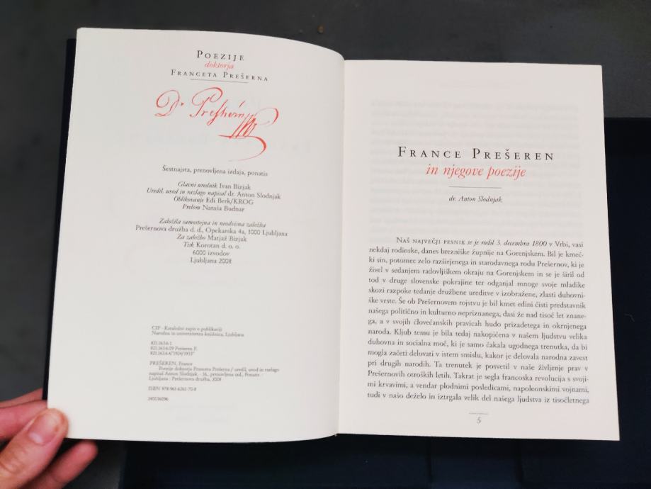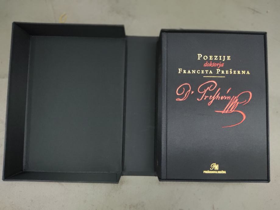 Prodam darilno izdajo (trda vezava, zlata obroba listov, originalna darilna škatla) Poezij dr. Franceta Prešerna. Knjiga je kot nova, leto izdaje je 2008.