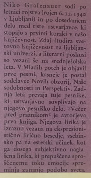 VEČER PRED PRAZNIKOM, Niko Grafenauer