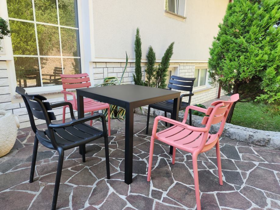 Miza Brunch je moderna miza s čistimi linijami, primerna za notranje in zunanje prostore. Na voljo je v dveh velikostih: 80x80 cm (109,99 €) in 140x80 cm (139,99 €).