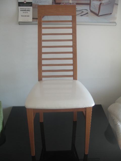 STOL ROSE, BUKEV BARVANA NA ČEŠNJO - MASIVA, OBLAZINJENO SEDIŠČE V MIKROTKANINI BEŽ BARVE, IZREDNO KVALITETEN STOL IN UDOBEN ZA SEDENJE