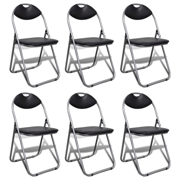 Ta komplet zložljivih stolov se ponaša s preprosto, ampak stilsko obliko. Komplet je popoln za uporabo okrog hiše, saj vam bo prišel prav, ko boste potrebovali dodaten prostor za sedenje. Kakovostni jekleni okvirji skrbijo za trdnost in izjemno trpežnost stolčkov. Na madeže in vodo odporna obloga iz umetnega usnja zagotavlja preprosto čiščenje stolčkov. Zahvaljujoč lahki konstrukciji, boste stole zlahka prenašali. Ko ne bodo v uporabi jih boste lahko zložili in tako prihranili nekaj prostora.Paket vsebuje 6 zložljivih stolov.