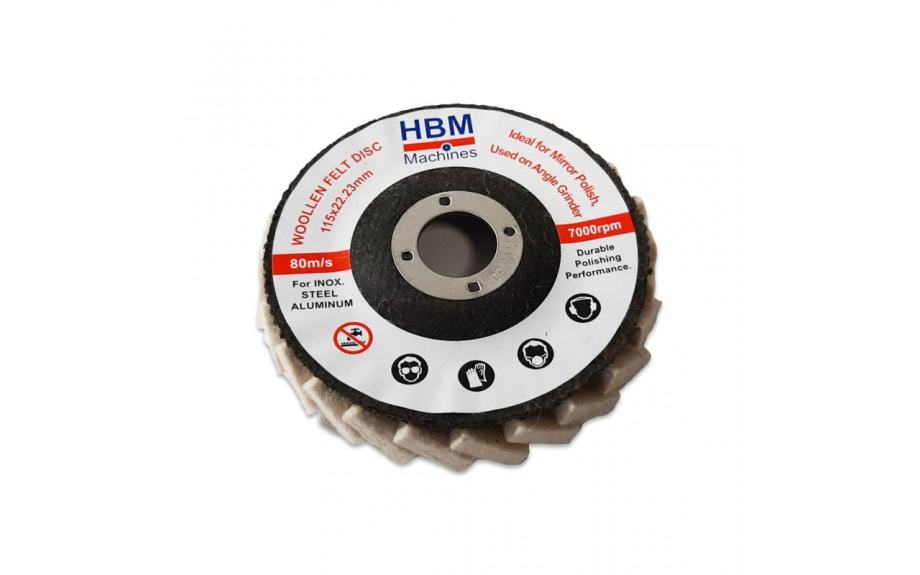 Premer: 115 mmOdprtina: 22 mmDebelina polirnega klobuka: 7 mmTeža: 80 g