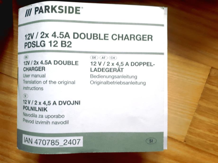 Dvojni polnilnik Parkside 12V / 2x 4.5A