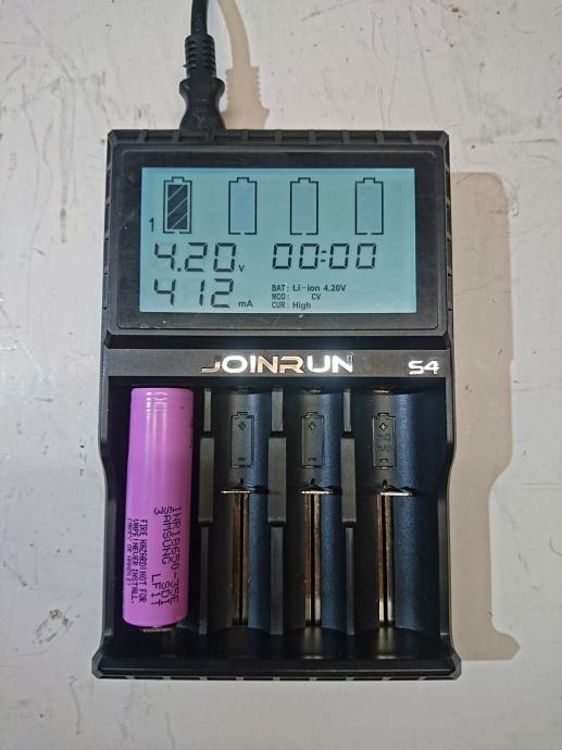 Velik osvetljen zaslon prikazuje status polnjenja, polnilnega toka, čas polnjenja in notranjo upornost celice. Omogoča izbiro velikega ali nizkega polnilnega toka.