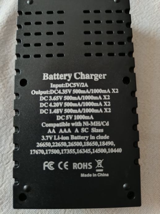 Prodam univerzalni polnilec za baterije + 2 Li-Ion bateriji 3,7V.