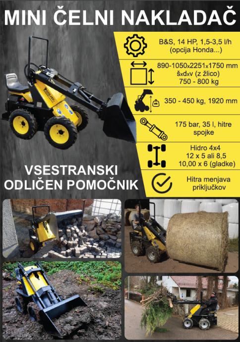 Odlični, močni in brezkompromisni mini nakladalnik, ki ga lahko uporabljate v gradbeništvu, vrtnarstvu pa tudi na kmetijah.