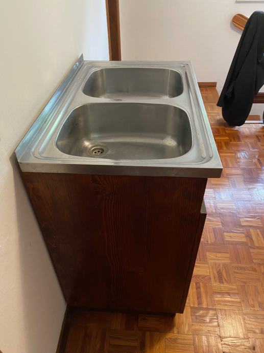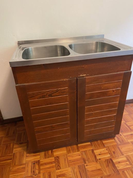 Prodam lepo ohranjeno dvojno pomivalno korito vključno z omarico iz masivnega lesa in odtočnimi priključki. Korito je zelo primerno za vikend, letno kuhinjo ali drugo uporabo.