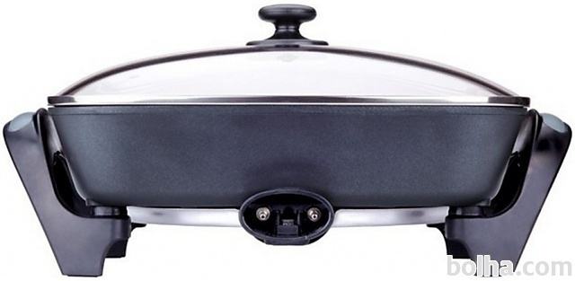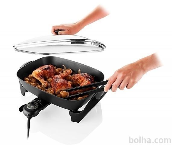 Opis:Večnamenska električna ponev ETA je primerna za pripravo hrane brez uporabe maščob. Deluje z močjo 1800W.Električna ponevPraktična ponev za kuhanje brez kuhalne plošče vam bo prišla prav na vašem vikendu, v študentskem domu ali doma.Pranje v pomvalnem strojuOmogoča vam enostavno pranje v pomivalnem stroju. Toplotno izoliran ročaj pa bo skrbel da boste lahko enostavno uporabljali ponev brez rokavic.Zdrav obrokHitro in zdravo boste lahko pripravili jedi brez uporabe maščobe.Izberite željeno temperaturoZ volumnom posode 5,5 L boste lahko kuhali na 7 stopnjah temperature (maksimalno do 200° C).Keramični premazOdličen material proti prijemanju. Segreva se zelo enakomerno in med segrevanjem ne tvori škodljivih snovi. Hrana se v keramični posodi ne prime, tudi če jo zažgemo.Izberite način pripraveIma funkcijo kuhanja, pečenja, praženja in cvrtja.Vzdrževanje temperatureVaše jedi bodo vedno tople zahvaljojoč sistemu, ki naredi spoj med pokrovom in ponvijo in tako prepreči, da bi se jed hitro ohladila.Tehnične lastnosti: Moč: 1800 W Volumen posode: 5,5 l 7 stopenj temperature (max. 200 ° C) Mere posode: 38 x 30 cm, globina 7 cm Vzdrževanje temperature Funkcija: kuhanja, pečenja, praženja, cvrtja "nano" keramični premaz (brez PTFE) Pralno v pomivalnem stroju Toplotno izolirani ročaji Mere V x Š x G: 22 x 46 x 38,5 cm Več podatkov si oglejte na tej povezavi...