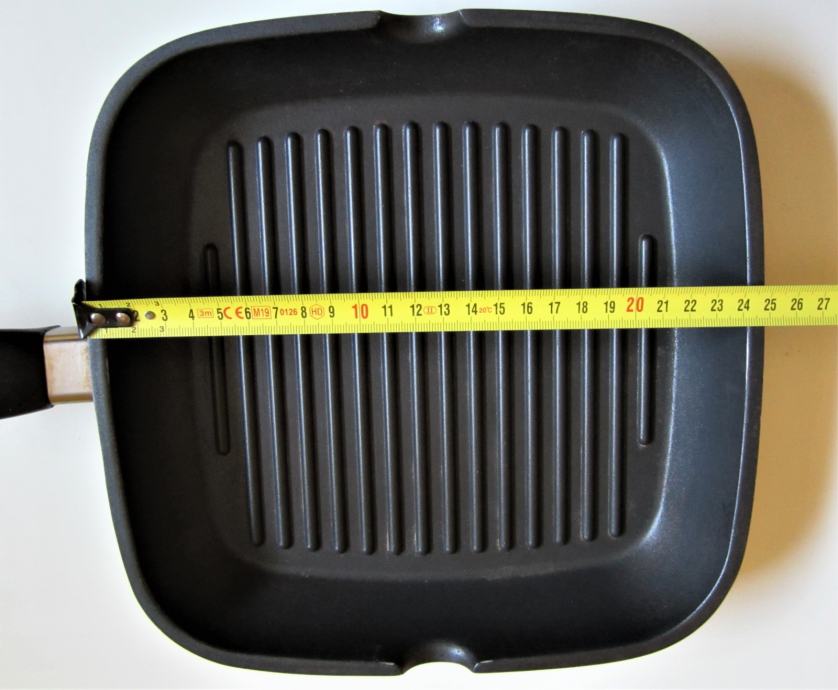 Prodam malo rabljeno žar ponev za zrezke 25x25 cm kot na sliki. Višina ponvi - 4 cm. Notranjost je prevlečena s posebno prevleko, ki zagotavlja dobro odpornost in preprečuje prijemanje hrane. Ponev zagotavlja enakomerno porazdelitev toplote. Lahko se uporablja na vseh vrstah štedilnikov, razen na indukciji. Primerna za pomivanje v pomivalnem stroju. Ogled in prevzem v Celju po 16 uri. Lahko pošljem po pošti. mob: OЗl-782-2O8