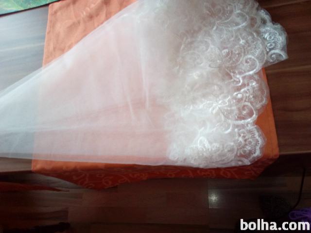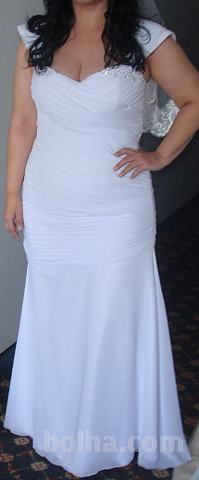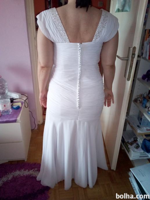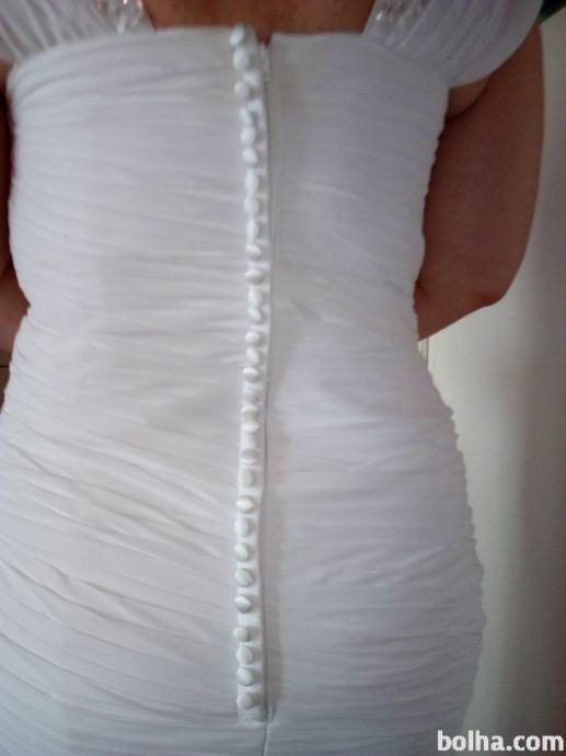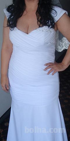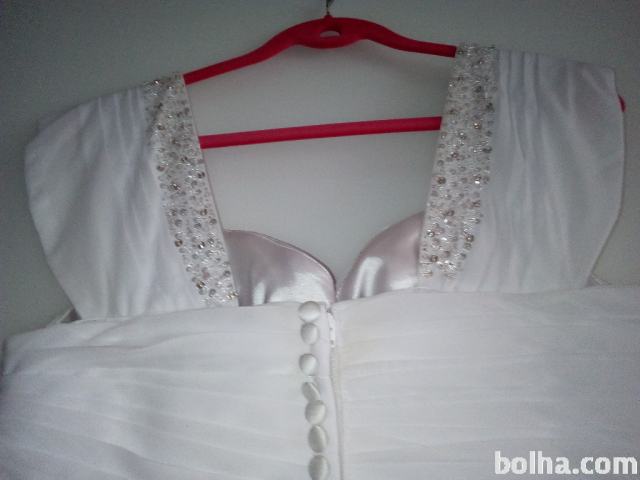 Prodam poročno obleko številka 40-42 (1x nošena). Mere: prsi 105-110, pas 85-90, boki 110-115.