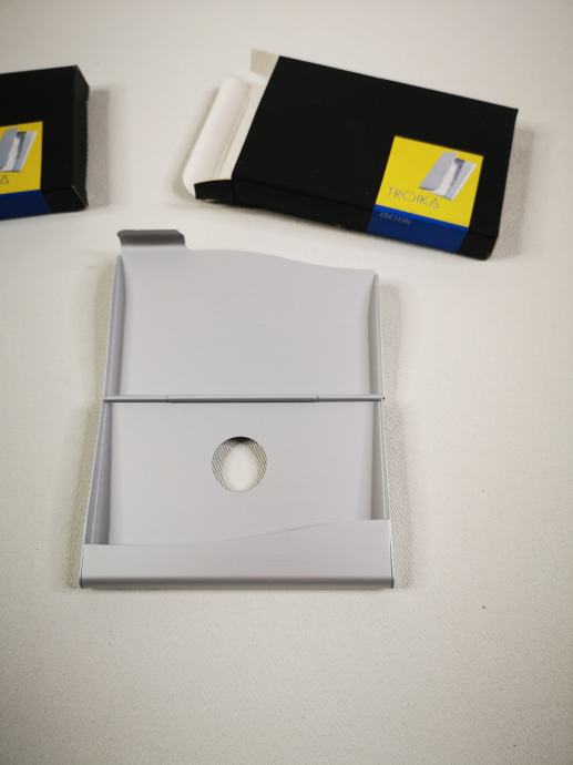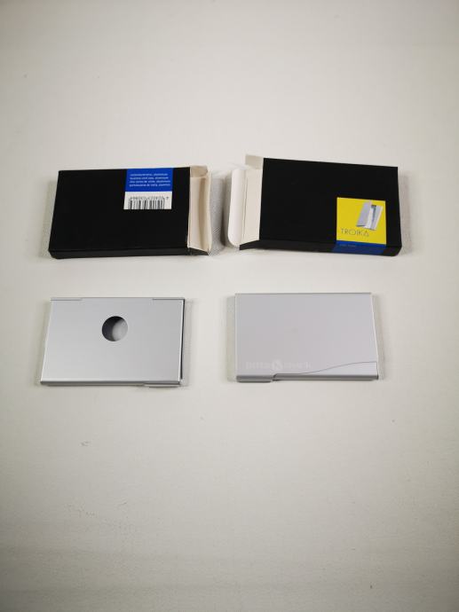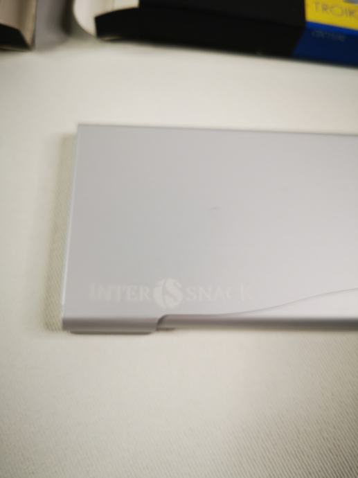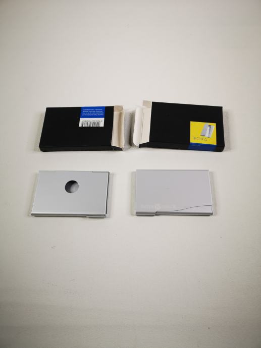 Prodam nov aluminijast etui oz. ovitek za vizitke. Lahek a močan. Poslovno darila, diskretno vgravirano ime nekega podjetja. Na voljo imam 2 kosa, cena je za kos. V škatlici.
