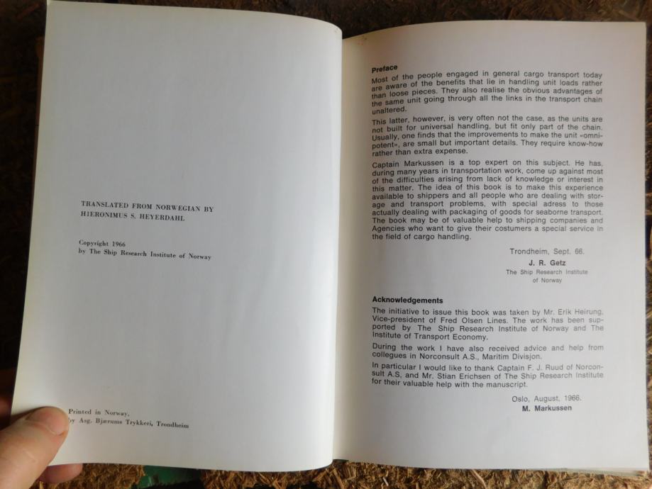 Priročnik za natovarjanje tovornih ladij v angleškem jeziku : THE UNIT LOAD. Original napisan 1966 v norveščini, to je angleški prevod.