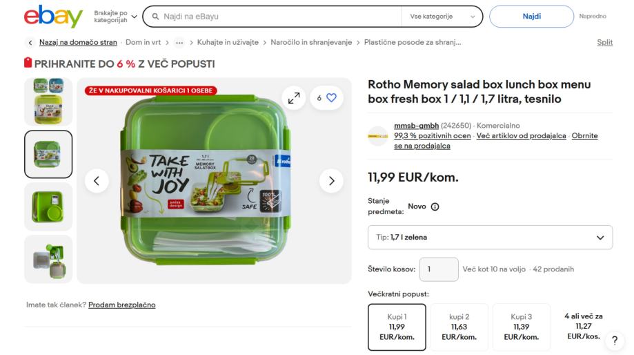 Na voljo 2 x nova škatla za shranjevanje "Memory B3" za solato ali malico švicarske znamke Rotho v zeleni barvi (MPC: 11,99€).
