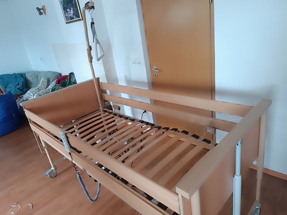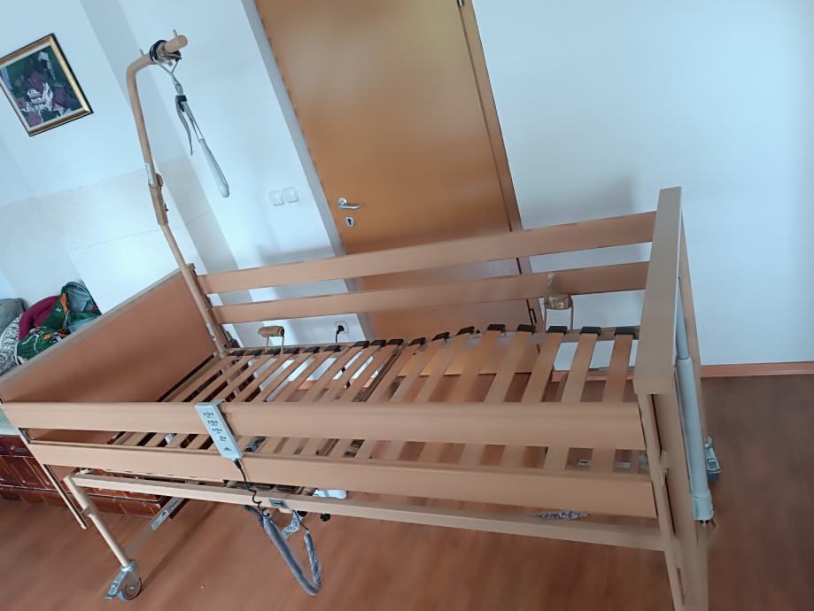 Prodajam električno negovalno bolniško posteljo z ograjo. Postelja je z daljinskim upravljalnikom nastavljiva po višini, prav tako ima enostaven mehanizem za premikanje ograj. Ležišče je 3 sklopno daljinsko nastavljivo.