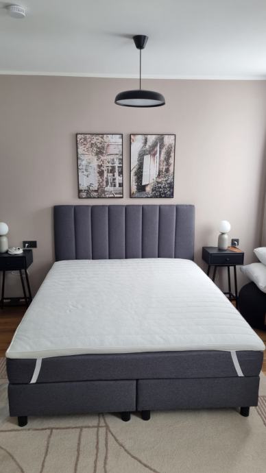 Boxspring postelja 160x200 osnova vezana plošča dvojno vzmetena plus toper, vzmetnica dva v enem H2/H3, barva mišje siva