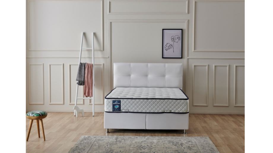 Postelja z dvižnim dnom nudi dodaten prostor za shranjevanje. Stabilnost postelje omogoča trdnost same baze, ki preprečuje premikanje. Vzmetnica telesu nudi odlično podporo, kvalitetna prešita tkanina pa omogoča večjo zračnost in odvajanje vlage. Vzmetnica ima obojestransko uporabo.