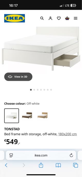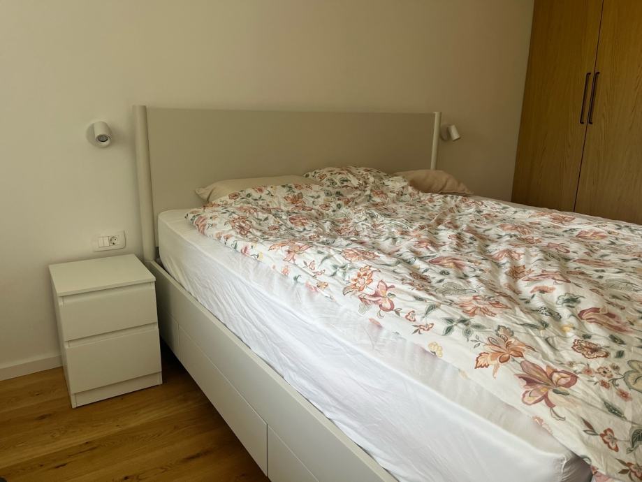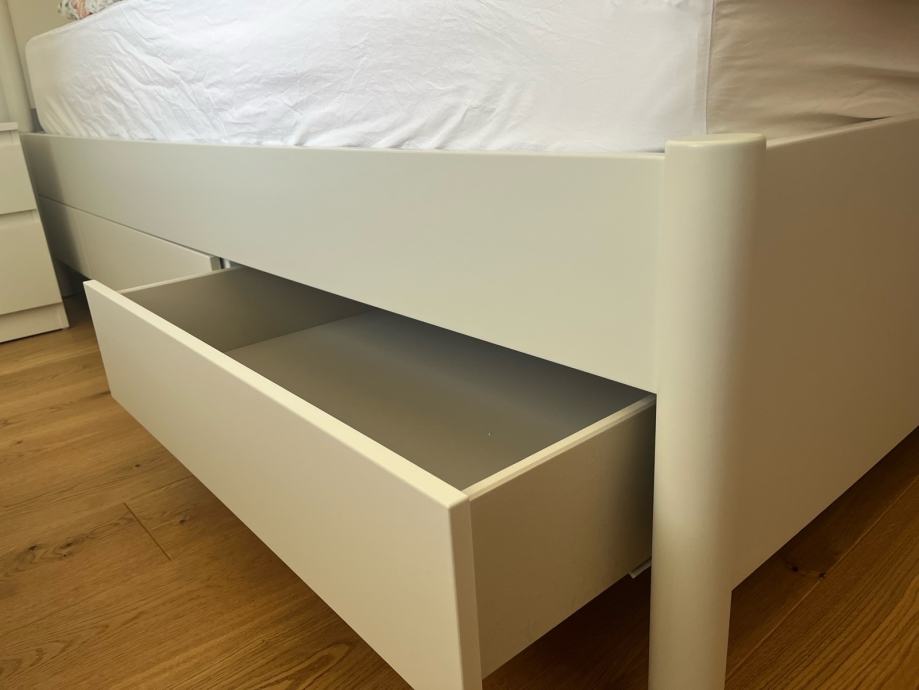 Kot nova Ikea Tonstad postelja, barva: krem bela, off white (ni čisto bela). Kupljena decembra 2024 v Avstriji - pri nas te barve in modela s predali ni. Na vsaki strani ima dva praktična in prostorna predala. MPC 549eur.