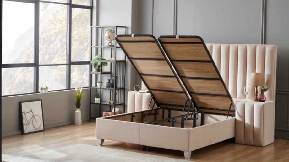 Postelja z dvižnim dnom nudi dodaten prostor za shranjevanje. Stabilnost postelje omogoča trdnost same baze, ki preprečuje premikanje.