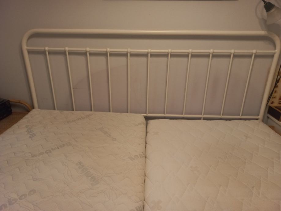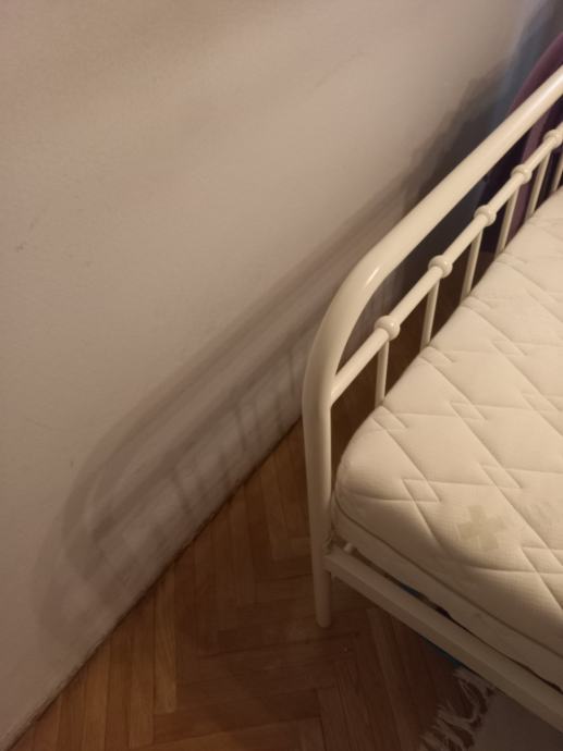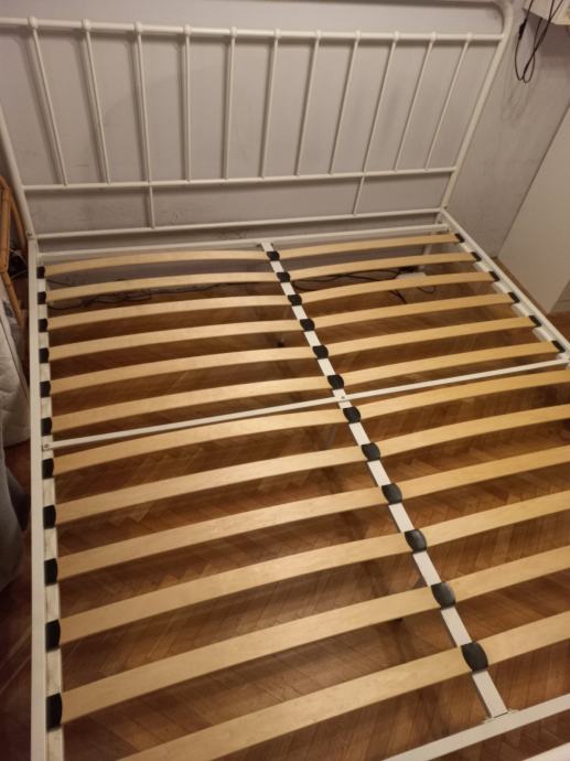 Prodam belo kovinsko posteljo (180x200) Z letvenim dnom, BREZ vzmetnic. Postelja je rabljena vendar zelo lepo in dobro ohranjena.