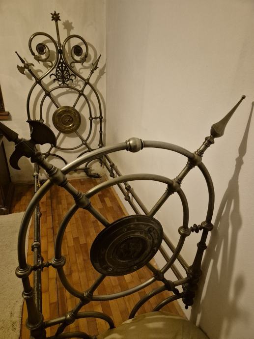 Prodam kovinski postelja z bogato okrašenim okvirjem. Gre za postelje s številnimi dekorativnimi elementi, vključno z ovalni medaljone in poudarjene linije. Postelja je iz kovine, ima značilno zaokroženo obliko okvira in različne ornamente. V prečnicah manjkajo kosi. Cena po dogovoru.