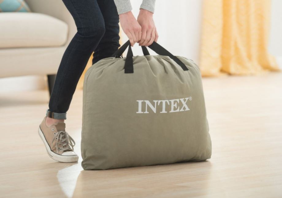 Napihljiva postelja Intex z vgrajeno tlačilko, ki napolni posteljo v 3,5 minutah. Postelja ima vgrajen tudi vzglavnik. Od tal je dvignjena 42 cm zato nimamo občutka da bi spali na tleh. Samonapihljiva postelja ima zgornjo plast oblečeno v zelo mehak in prijeten na dotik material zato spodnja rjuha ni potrebna. Mehko vrhnjo plast lahko operete z vlažno krpo in nežnim milom ter pustite, da se posuši brez uporabe sušilnika. V notranjosti je ojačana s fiber-tech tehnologijo, ki poveča udobnost in trajnost postelje.