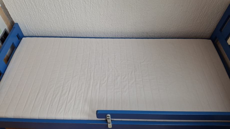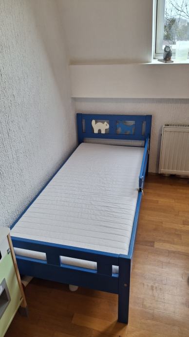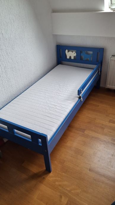 Prodajam rabljeno otroško posteljo dimenzij 160x70 cm z modrim okvirjem in simpatičnimi motivi na vzglavju. Postelja je v dobrem stanju in vključuje vzmetnico, idealna za vašega malčka.