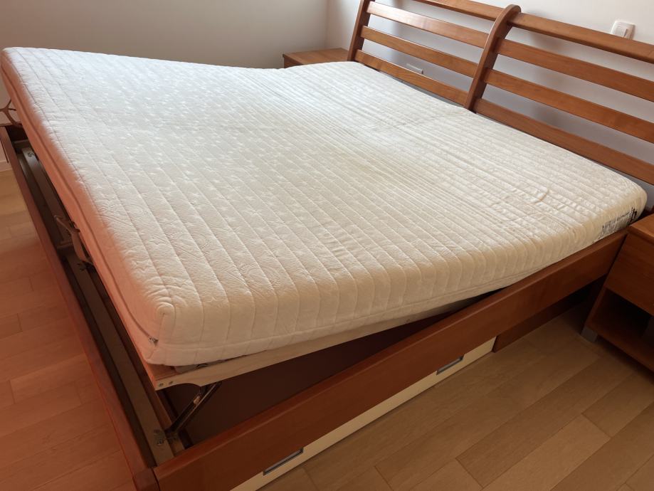 Skupaj s posteljo podarim še dva pripadajoča letvena dna (nastavljiva po trdoti v več conah), ki omogočata tudi dvig jogija zaradi prezračevanja.