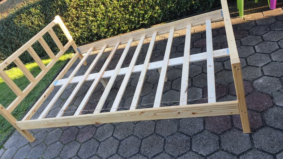 Izdelujemo enostavne in masivnr postelje 120 x 200 ali dolžino 190 iz smrekovega lesa, ne barbo in ne lakirano čisto natur. Cena za komplet posteljo ( stranice, letvice, spredaj, zadaj in stredinska opora + vijaki)
