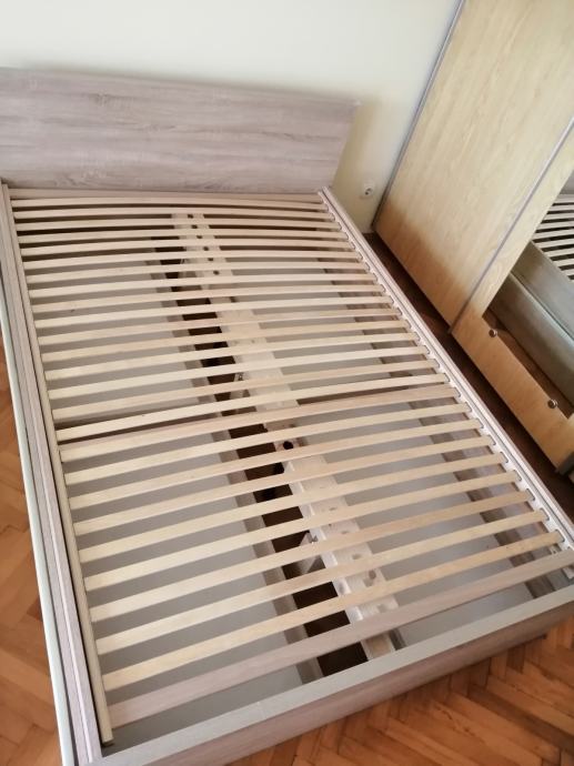 Postelja je stara 3 leta in je bila kupljena v Lesnini: https://www.xxxlesnina.si/p/carryhome-postelja-140-cm-x-200-cm-leseni-material-hrast-artisan-002522009108 (tu je fotografija brez predalnikov).