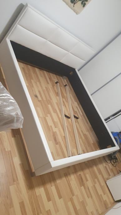 Prodamo posteljo 180X200 iz umetnega usnja, bele barve. Je zelo lepa, kompaktna, močna in ne škripa. Je dobro ohranjena, vendar ima na enem robu na stranici majhno poškodbo (odrgnina), ki se lahko sanira.