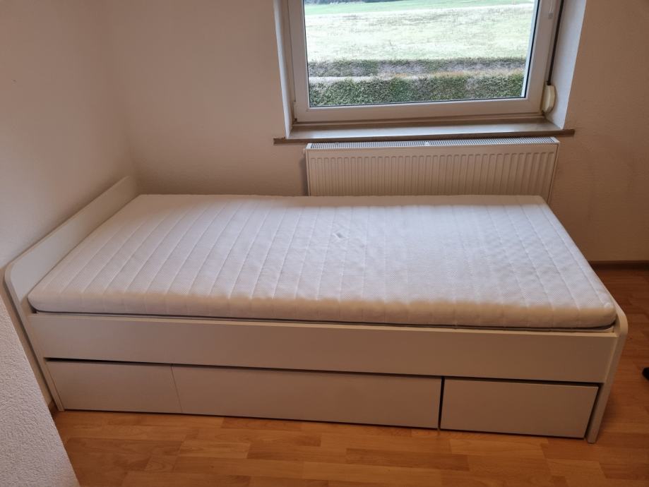 Ugodno prodamo skoraj novo posteljo 200x90, skupaj z letvenim dnom in jogijem. Vse je skoraj nerabljeno in je kot novo. Pod posteljo so trije izvlekljivi predali, eden je delno pokrit in lahko služi kot nočna omarica.