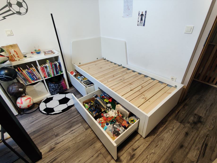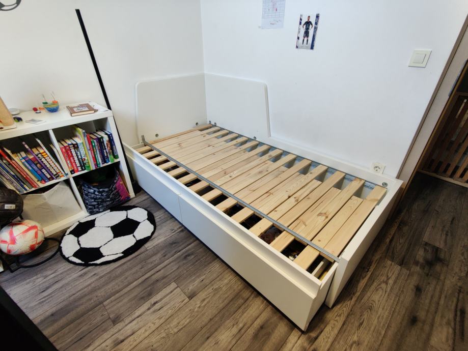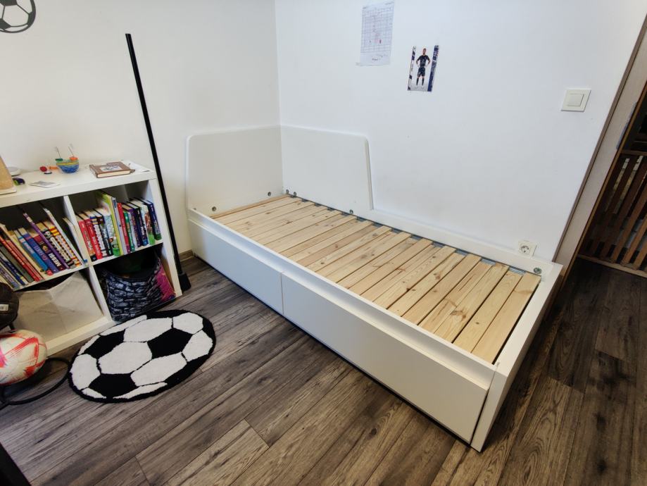 Postelja 80x200, dodatno izvlečno ležišče in 2 predala (Ikea Flekke)