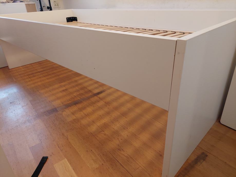 Pod posteljo je veliko prostora za shranjevanje, npr. za škatle višine cca. 33 cm.