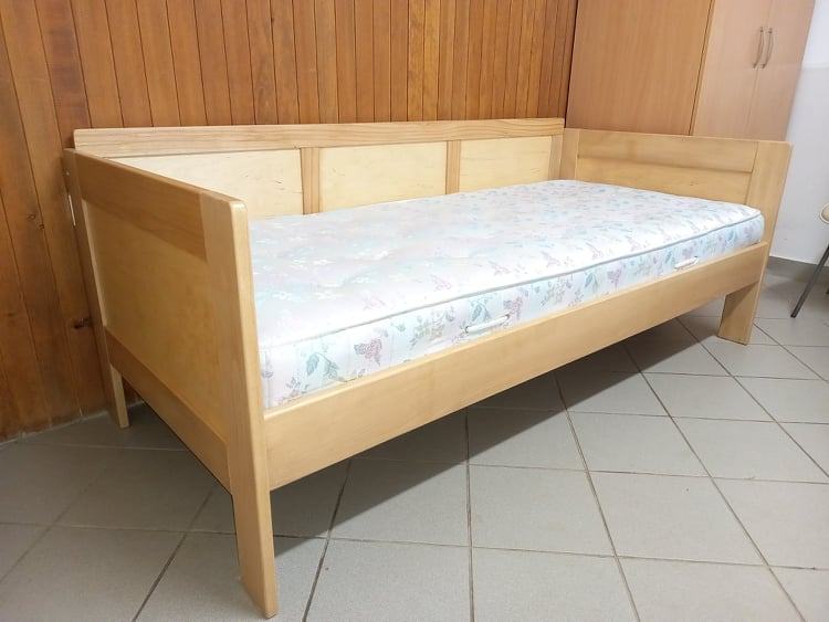 Masivna postelja s stranico iz masivnega lesa. Ugodno.