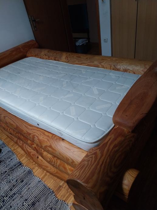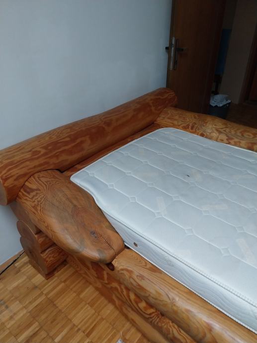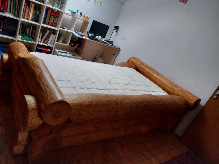 Doma ročno izdelana postelja iz bora.