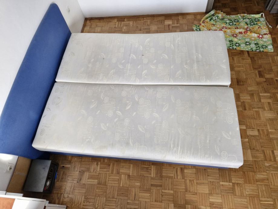 Modra postelja dvizna s shrambo. Dobro ohranjena 160 x 200.