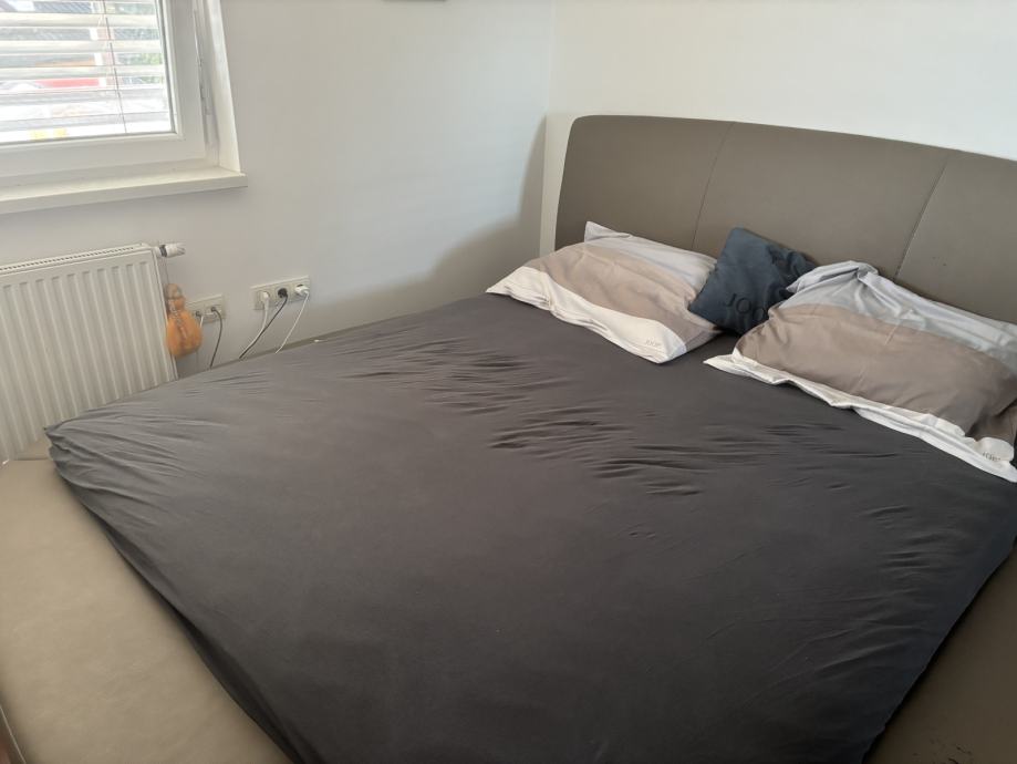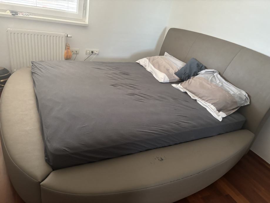 Prodam posteljo, oblazinjeno v umetno usnje bez barve. Celotna dimenzija 230x230, posteljni vlozek dimenzije 180x200. Postelja se prodaja brez vlozka. Kupljena v Rutar Slovenija.