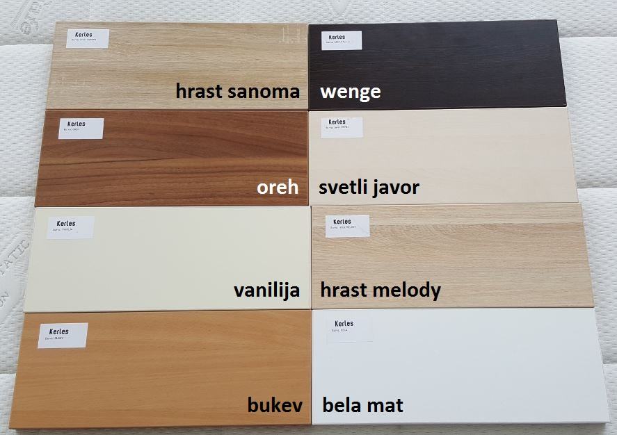 Na voljo je v barvah: bukev, javor, hrast melody, sanoma hrast, vanilija , oreh, wenge ali bela.