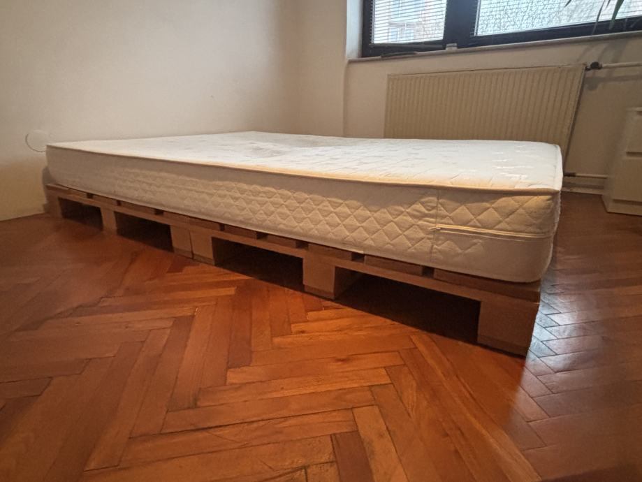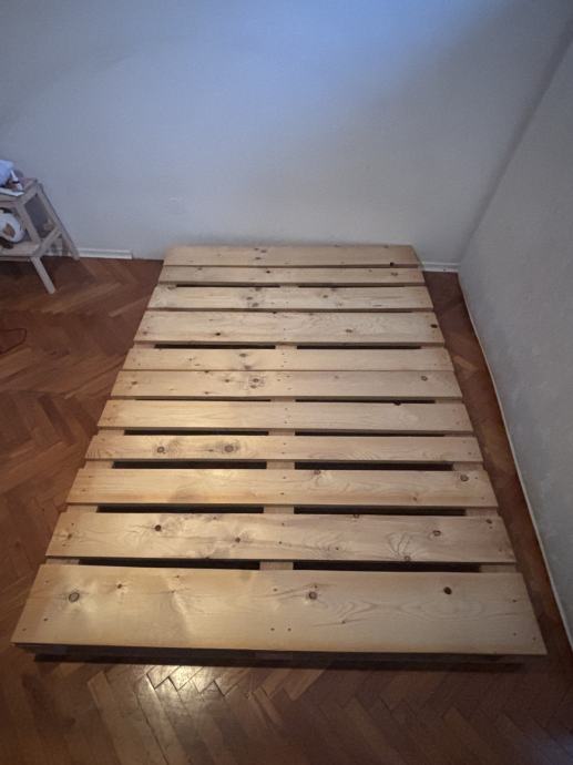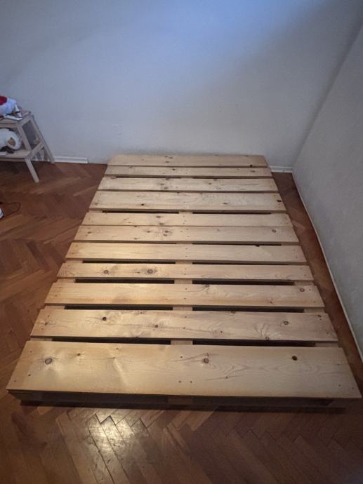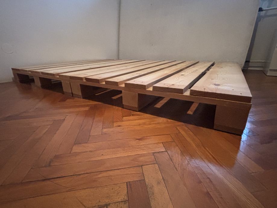 Postelja je rabljena, vendar v dobrem stanju. Palete imajo brušeno in gladko površino ter so izdelane iz širših, kakovostnih desk.