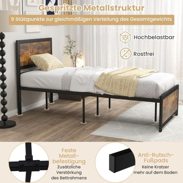 Nadgradite svojo spalnico z okvirjem industrijske dvojne postelje in pogumno izrazite. Visoko vzglavje zagotavlja podporo in industrijsko estetiko. Doživite miren spanec s tihimi znanstvenimi dušilci zvoka. Vgrajeno vznožje preprečuje zdrs vzmetnice in povečuje stabilnost. Ta proti rji odporen kovinski posteljni okvir lahko z 9 podpornimi nogami prenese do 220 kg, kar zagotavlja enakomerno porazdelitev pritiska. 36 cm nad tlemi nudi platformna postelja prostoren prostor za shranjevanje različnih škatel. Namestitev je brez stresa z jasnimi navodili in brez potrebe po škatlasti vzmeti. Poiščite popolno prileganje s priporočeno debelino vzmetnice 10–20 cm. Spite udobno in stilsko z našim izjemnim okvirjem za enojno posteljo.